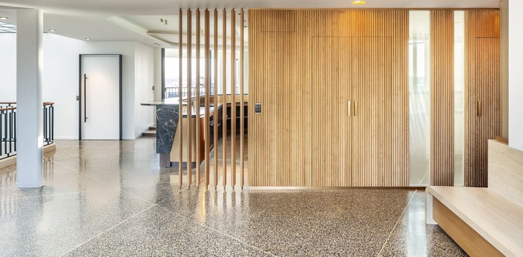 Le terrazzo AdLucem® offre une surface visuellement continue, sans joint.