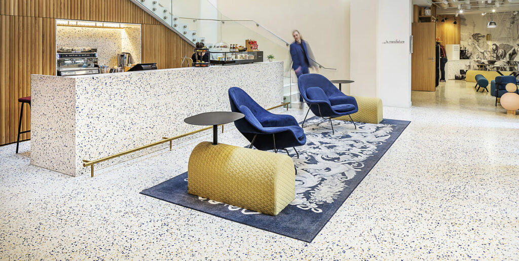 Notre service de développement accompagne cette démarche pour concevoir des terrazzo sur mesure, pensés pour durer et raconter à travers la matière l’histoire de ces lieux.